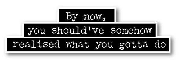 Den råa, nästan maskinskrivna typografin mot svart bakgrund ger ett avskalat och ärligt uttryck. Perfekt för dig som gillar ord med tyngd, utan krusiduller.