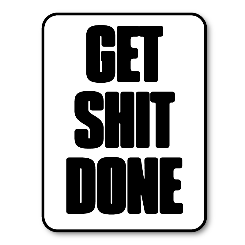 Get Shit Done är klistermärket för dig som föredrar handling framför snack. Rakt, kompromisslöst och utan lull-lull – ett tydligt budskap till både dig själv och omgivningen. Perfekt för laptoppen, verktygslådan, skrivbordet eller där du behöver en daglig push att faktiskt få saker gjorda.
