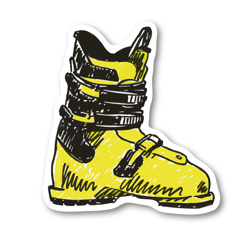 Ge prylarna lite äkta fjällfeeling med detta stilrena och handritade klistermärke föreställande en klassisk gul skidpjäxa! Perfekt för dig som älskar skidåkning, vinter, alpina äventyr – eller bara vill ge datorn, hjälmen eller vattenflaskan en sportig och personlig touch.