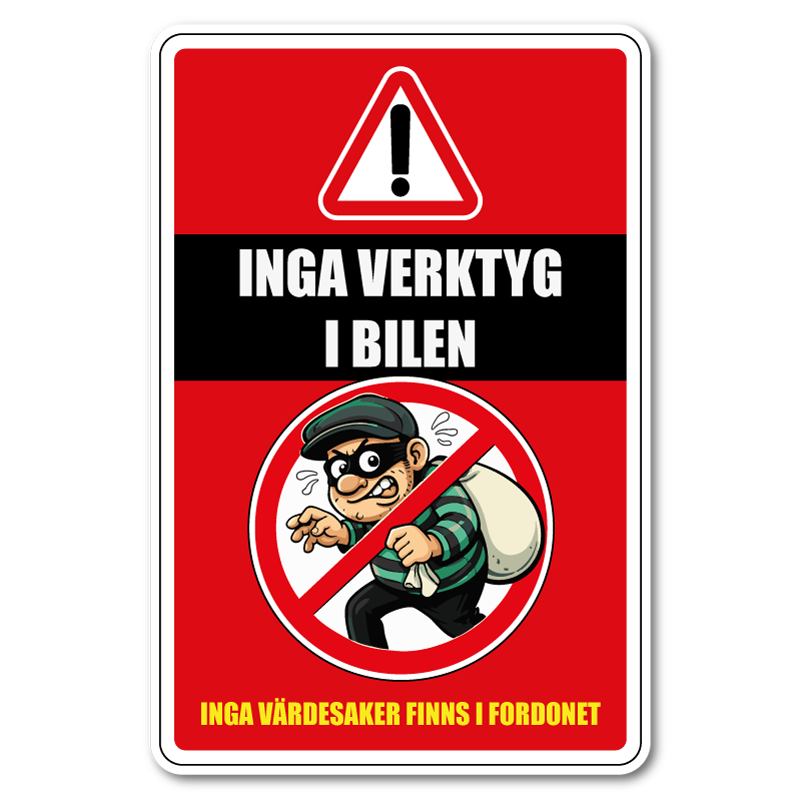 Bli först med att recensera ”Inga verktyg i bilen – varningsskylt / klistermärke”