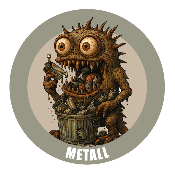 Det här robusta metallmonstret gör källsorteringen både tydligare och roligare! Med sitt hungriga gap fullt av burkar och metallförpackningar visar det precis var metallavfallet ska hamna. Perfekt för återvinningsstationer, miljörum, garage, skolor och arbetsplatser.