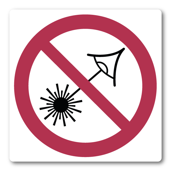 Ett tydligt förbudsklistermärke som markerar att laserstråle inte får riktas mot ögonen. Passar för verkstäder, industri, laboratorier och andra miljöer där laserutrustning används och där ögonskador kan uppstå. Den röda förbudssymbolen är lätt att uppfatta och minimerar risken för allvarliga skador.