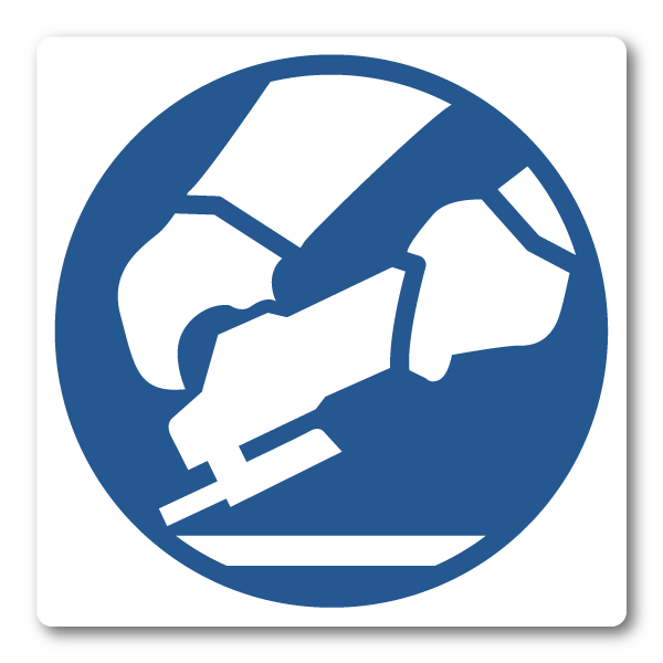 Ett tydligt klistermärke som markerar att skyddsutrustning ska användas vid arbete med vinkelslip. Passar perfekt i verkstäder, industrier och arbetsmiljöer där slipning och kapning förekommer. Symbolen ger en snabb visuell påminnelse om säker hantering av maskinen.